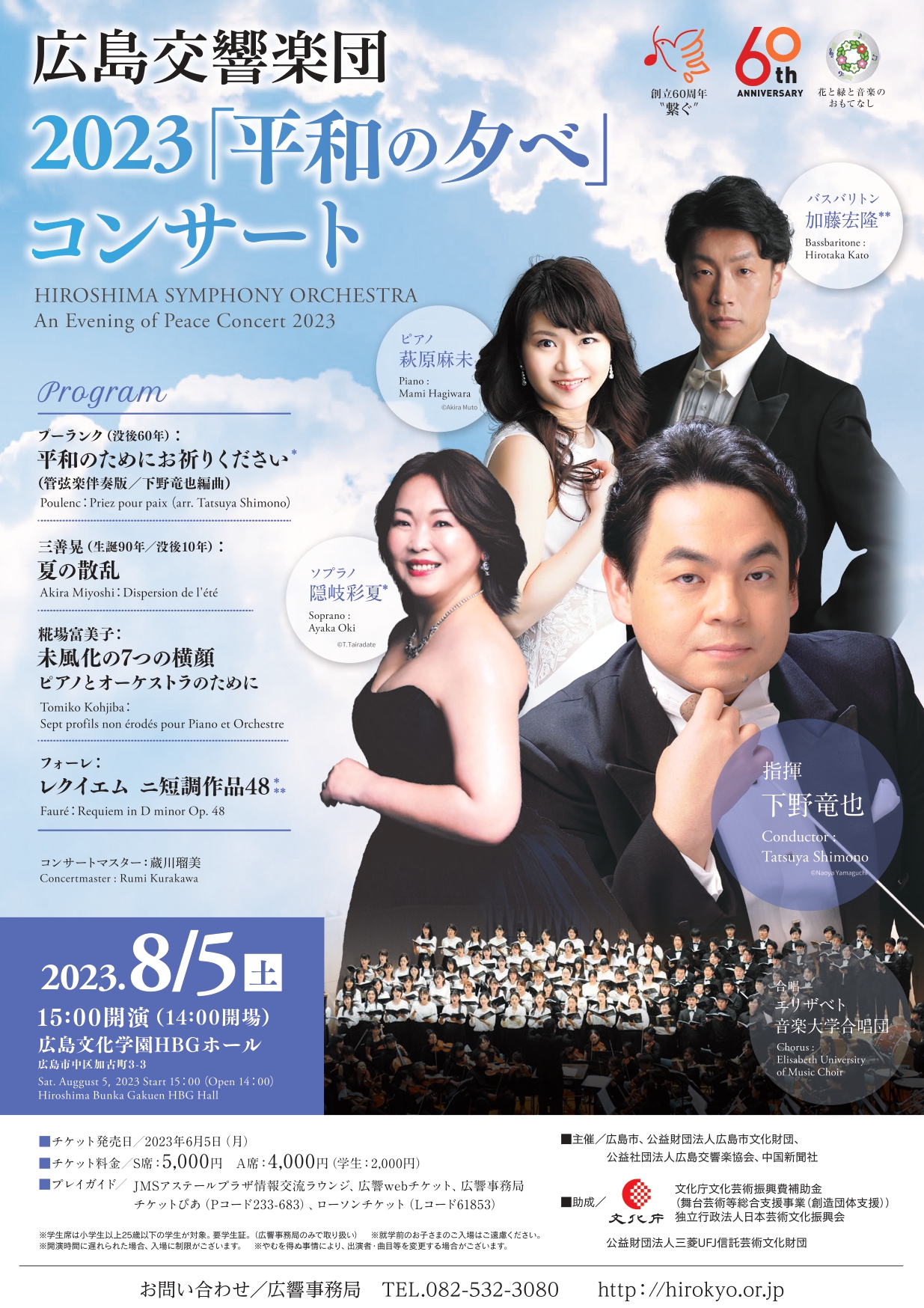 ローソンチケット、チケットぴあ、JMSアステールプラザ情報交流ラウンジ、広響事務局(学生は広響事務局のみ販売)