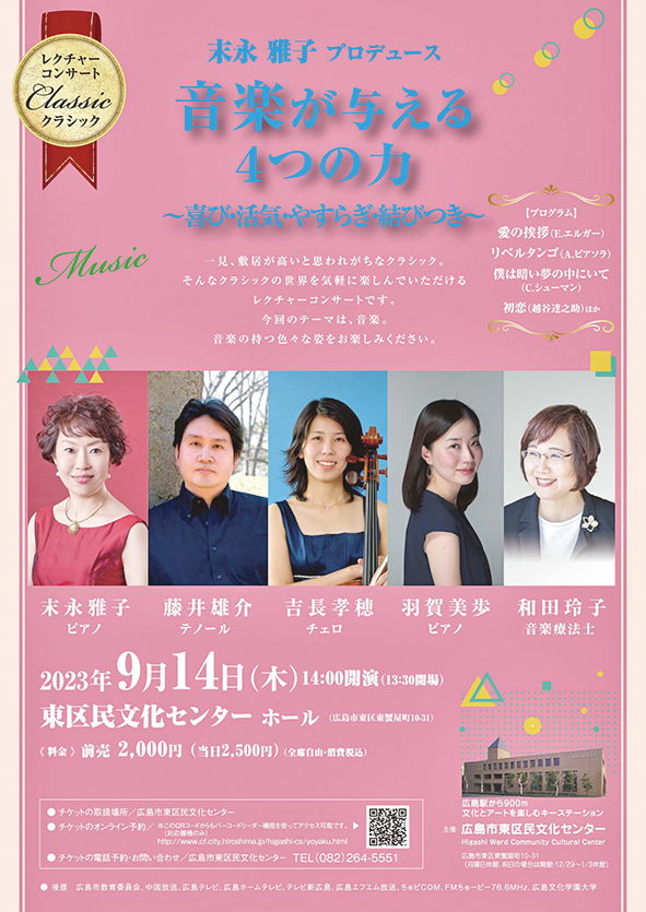 レクチャーコンサートクラシック 末永雅子プロデュース 音楽が与える4つの力~喜び・活気・やすらぎ・結びつき~