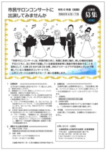 市民サロンコンサート令和6(2024)年度(前期)出演者募集(募集は終了しました。)