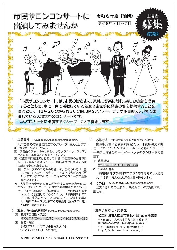 (公財)広島市文化財団 企画事業課「市民サロンコンサート」係