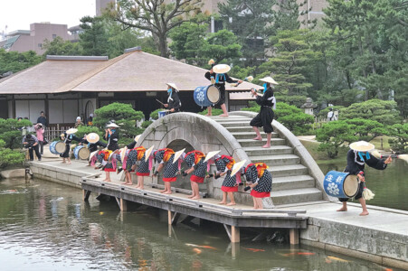 五穀豊穰を祈り各地で行われる田植え踊り。縮景園にも4つの水田があり、ここで県内の団体による田植え踊りを楽しめる。「新庄のはやし田(国重要無形民俗文化財)」は13:00~と13:35~に。県無形民俗文化財「南条おどり」は14:15から。あわせて園内の「清風館」ではお茶会も開催(上田宗箇流和風会青年部)。広島藩ゆかりの行事を楽しんで。