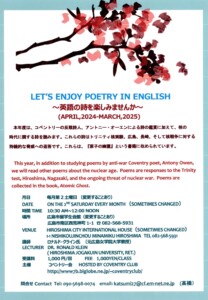 イギリスの平和詩人Antony Owenの詩集から一篇とAtomic Ghost の中から一篇を、講師のRonald Klein 氏の解説を聞きながら味わいます。