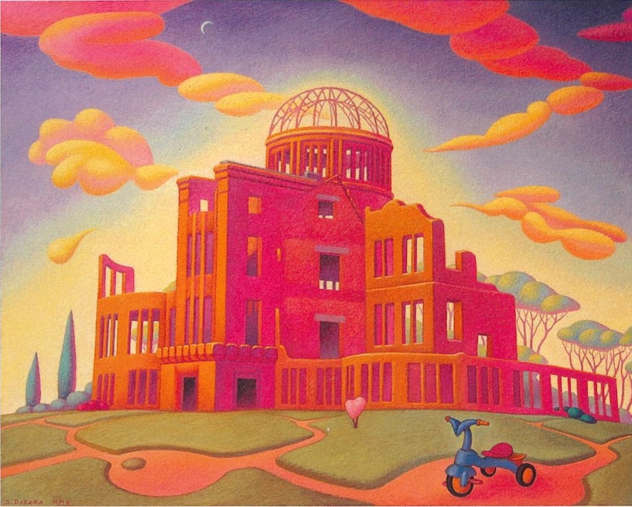 広島市生まれで現在イタリアのフィレンツェ在住で創作活動を続ける道原聡氏の作品「宮島」や平和への願いを表現した「原爆ドーム」を展示。同時開催にて被爆から1か月後に広島を襲った枕崎台風の当時の様子を柳田邦男氏の「空白の天気図」を題材に紹介。