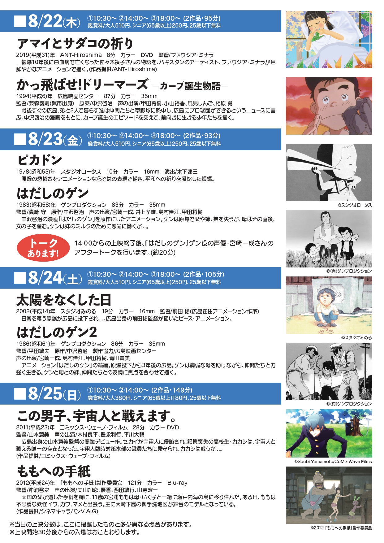 広島ゆかりのアニメーション2024「ピカドン」、「はだしのゲン」*14:00の回、ゲン役の声優・宮崎一成さんのアフタートークあり