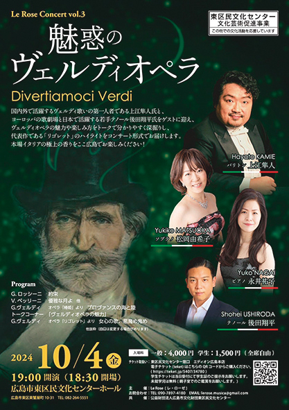 東区民文化センター 文化芸術促進事業 Le Rose コンサート vol.3 魅惑のヴェルディオペラ