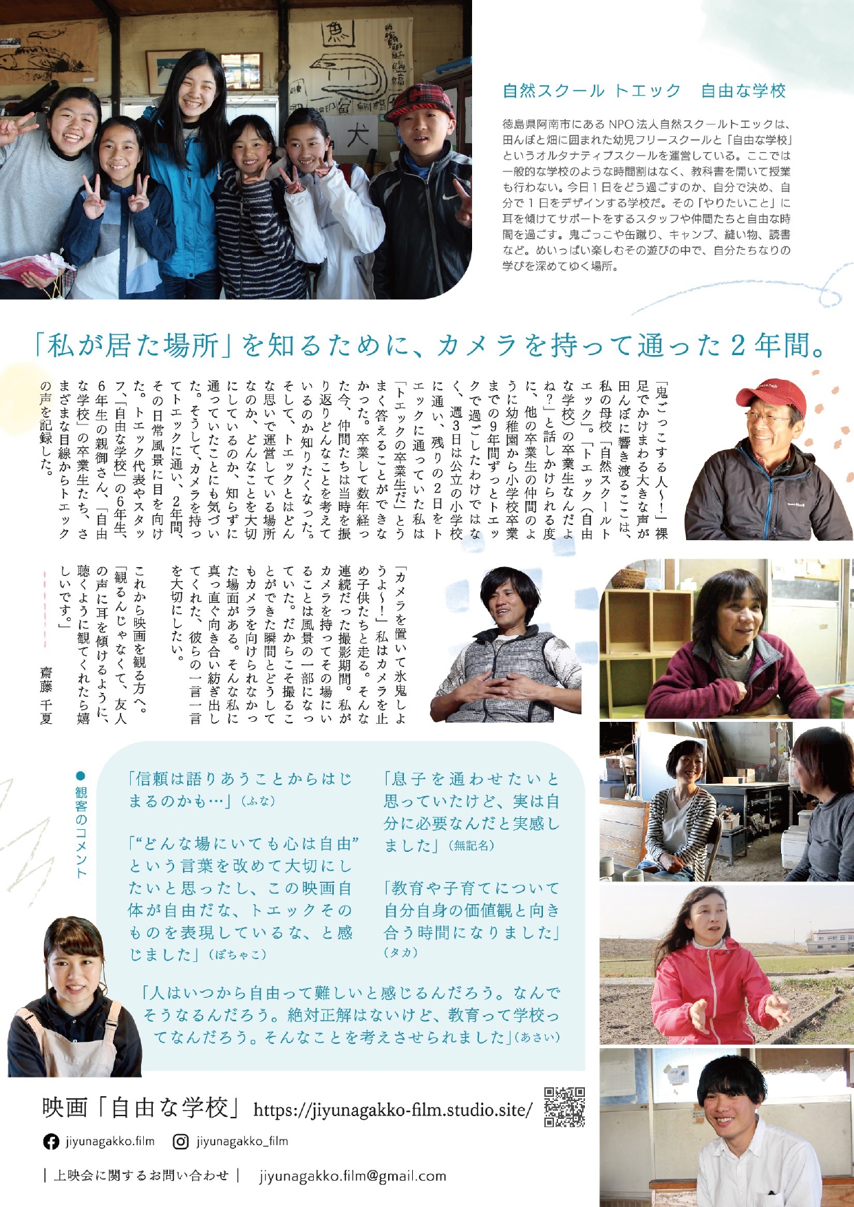徳島県阿南市にあるオルタナティブスクール「自然スクールトエック」の卒業生が、自分が居た場所について知りたいと、2年に渡りカメラを回して撮影された映像です。