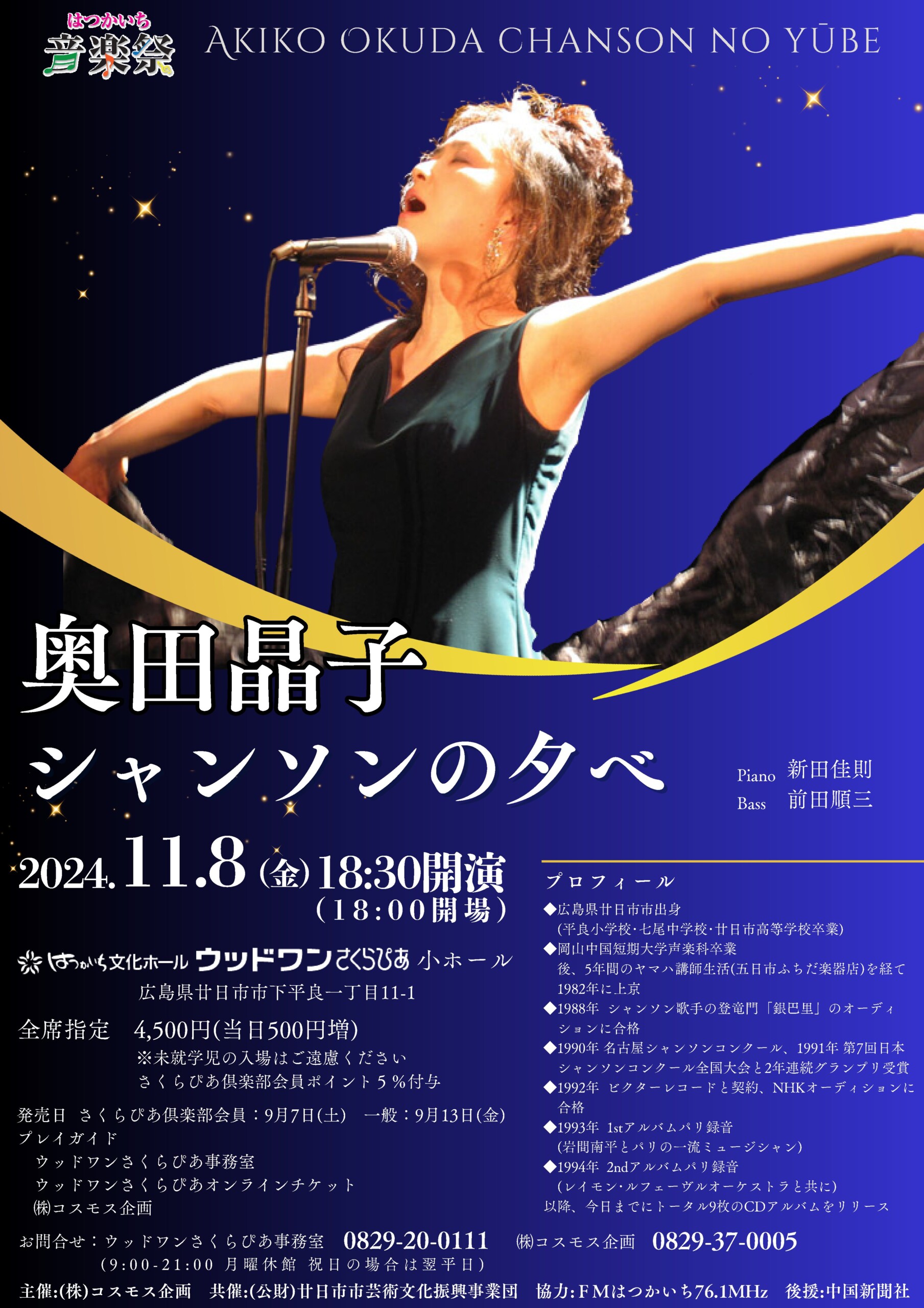 廿日市出身”涙と感動のシャンソン歌手”奥田晶子待望のさくらぴあ公演