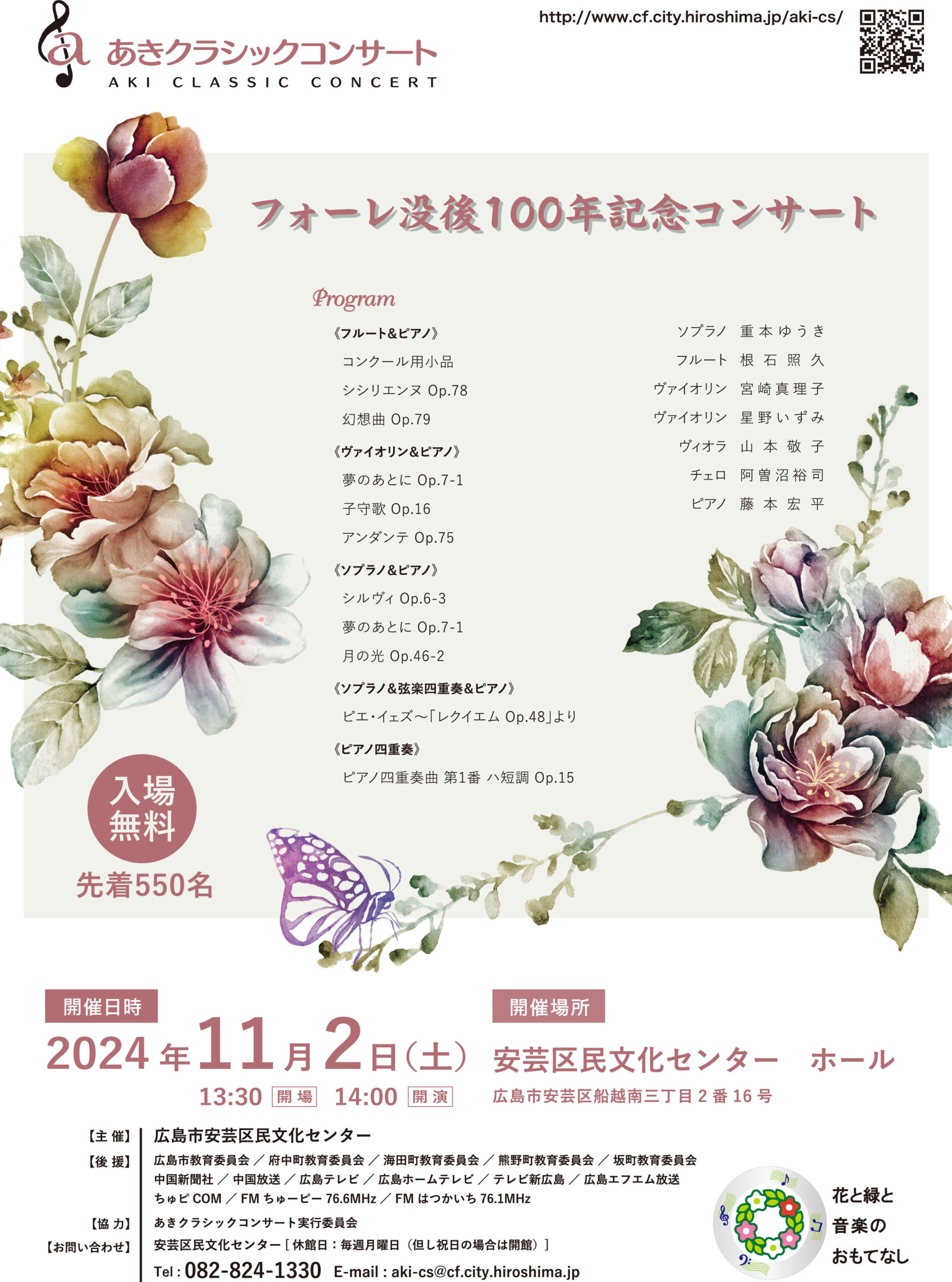 あきクラシックコンサートvol.232「フォーレ没後100年記念コンサート」
