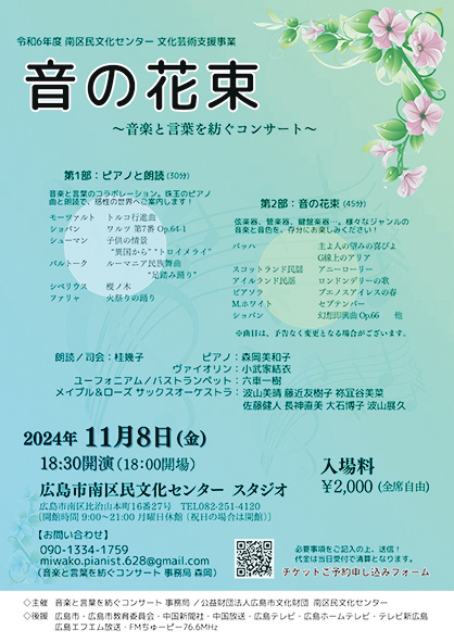 音楽と言葉を紡ぐコンサート事務局 TEL.090-1334-1759 ✉miwako.pianist.628@gmail.com