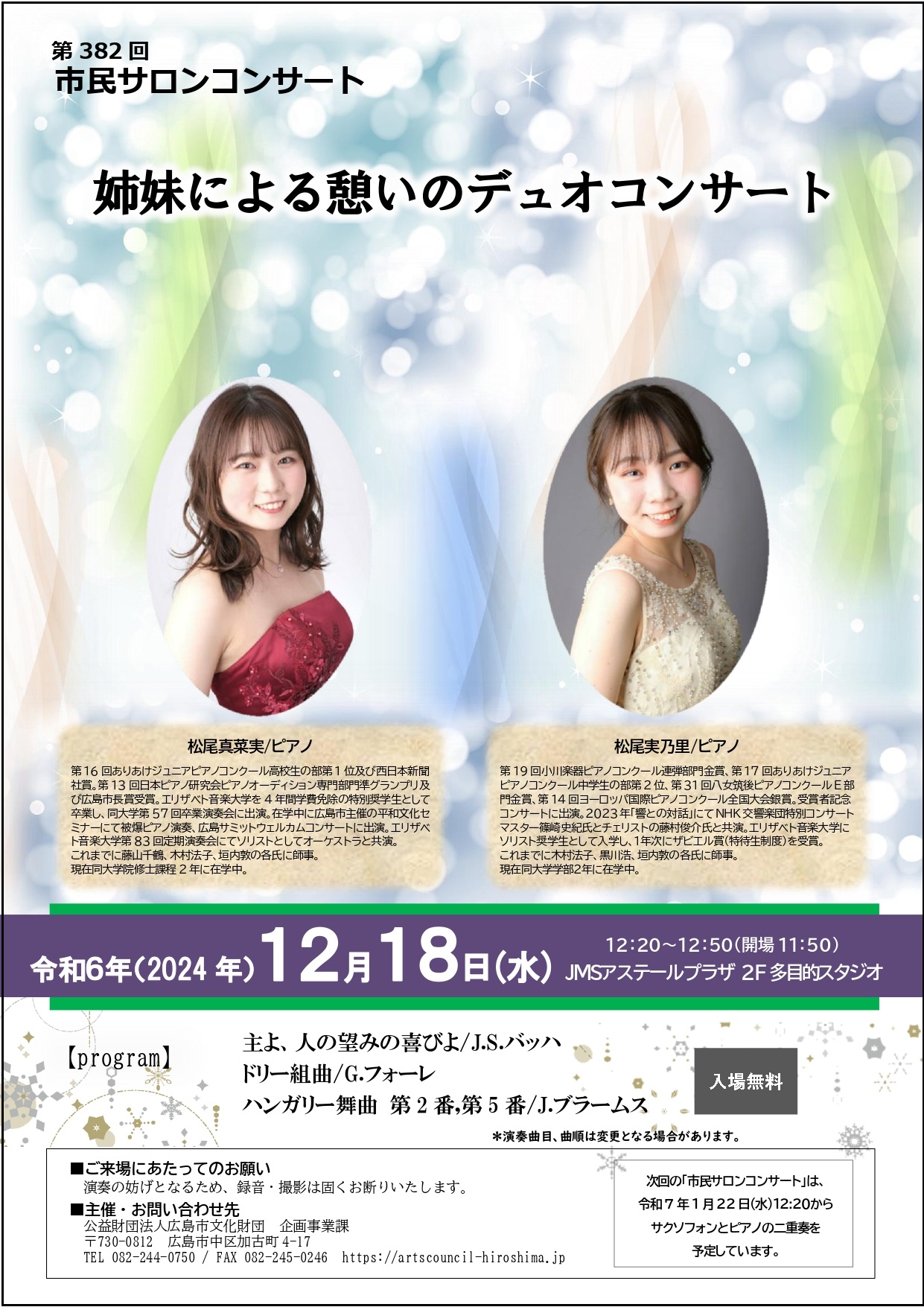 第382回市民サロンコンサート「姉妹による憩いのデュオコンサート」