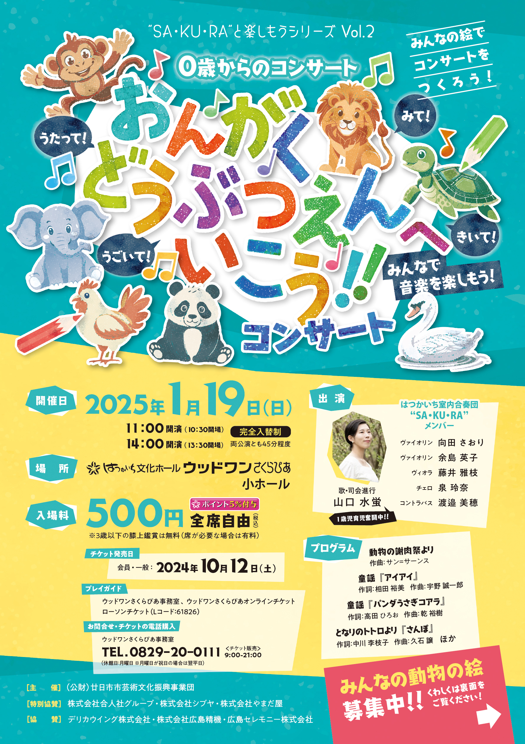 “SA・KU・RA”と楽しもうシリーズ Vol.2 0歳からのコンサート「おんがくどうぶつえんへいこう!! コンサート」