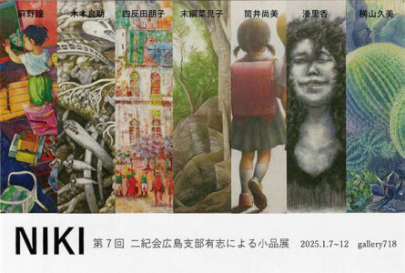 二紀会に所属する7名の作家(麻野瞳、木本良助、四反田朋子、末綱菜見子、筒井尚美、湊里香、横山久美)による小作品の展示会です。油絵、アクリル画、水彩画、鉛筆画、版画など約50点を展示予定です。二紀会作家の新たな表現をご覧いただけたら幸いです。