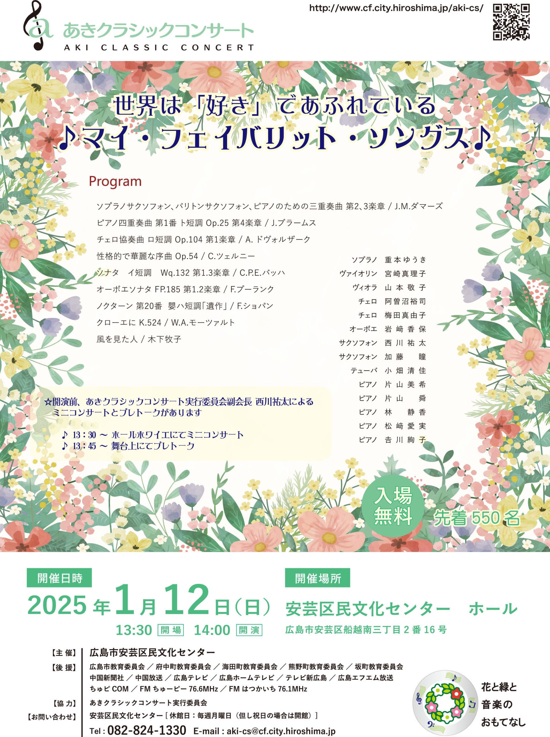 あきクラシックコンサート Vol.235「世界は「好き」であふれている♪マイ・フェイバリット・ソングス♪」