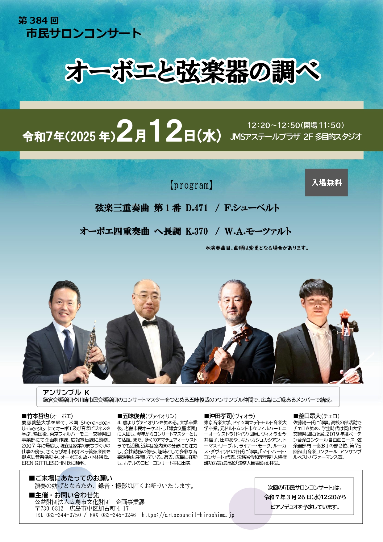 第384回市民サロンコンサート「オーボエと弦楽器の調べ」