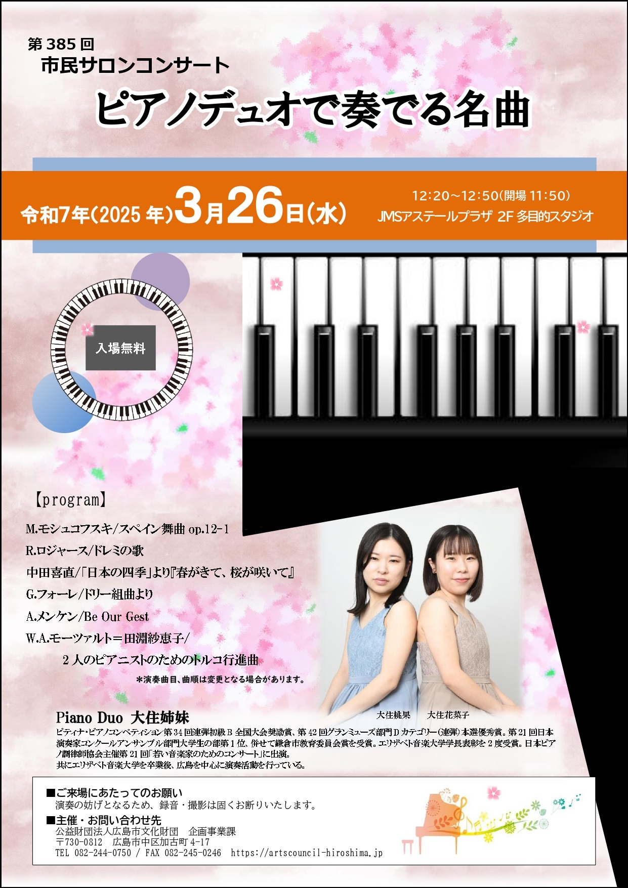 第385回市民サロンコンサート「ピアノデュオで奏でる名曲」