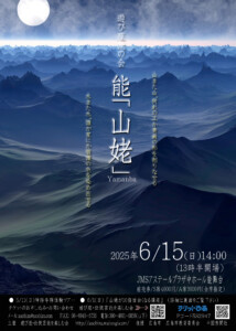 初心者も能を楽しんでほしいと始まった会。今回は「山姥」を、広島市出身の能楽師 山下あさのさんらが舞う。物語の舞台は、越後と越中の国境。峠越えの途中で日が暮れた一行は、その夜、鬼女に出会う。上演前には短い解説もあり。「鬼は今で言うと、この世とあの世の両方を知る者。宇宙や自然への畏怖を舞台から感じて」と主催者。6 月1 日には解説講座も開催(別途有料)。
