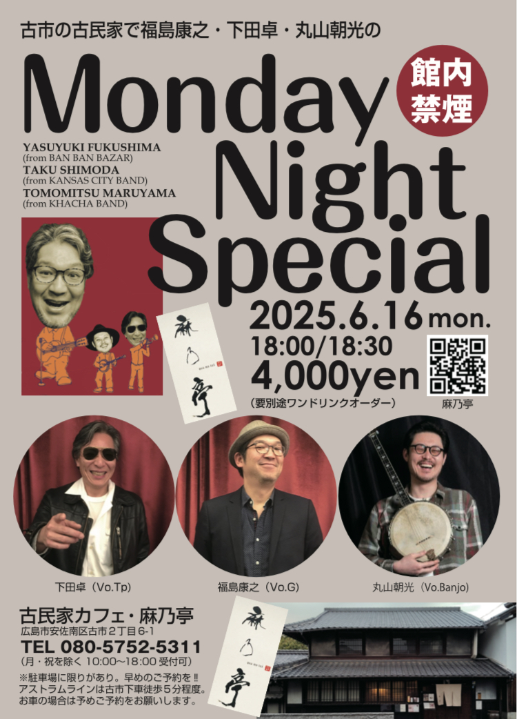 ジャズの発祥、ニューオリンズのデキシージャズを聴きながら、ドリンク片手に、この日だけは麻乃亭が大人の社交場に変身します!