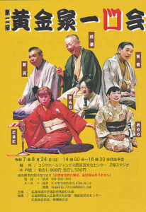 広島で活動中の落語家5人による落語会。出演は、黄金家爲蔵さん、黄金家鉄兵さん、プチ亭とまとさん、プチ亭あららさん、柱笑福さん。いずれも年間いくつものステージをこなし、笑いと癒しを届け続ける経験豊富なメンバー揃い。公演予定は2時間半!楽しい落語をたっぷり楽しめそう。定番の名作落語から創作落語、トークまで楽しんで。寄席文字は、かんなさんが担当。