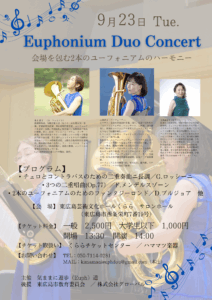 今回5回目となるこのコンサート。柔らかくふくよかな2本のユーフォニアムの音色が重なり、会場いっぱいに響き広がるハーモニーを是非会場でお楽しみください。