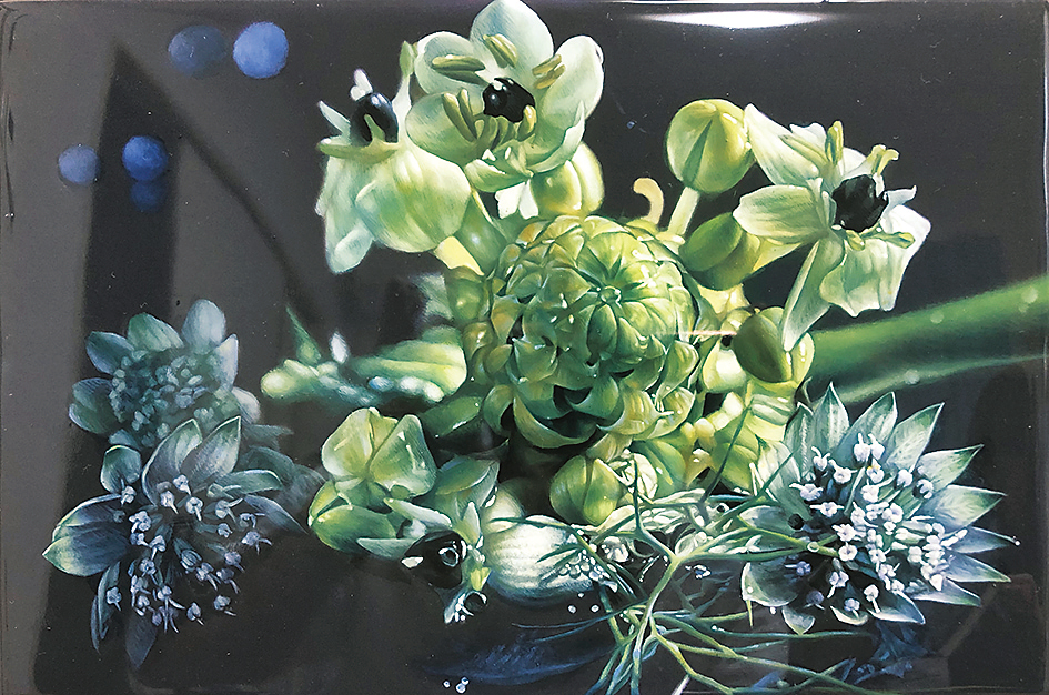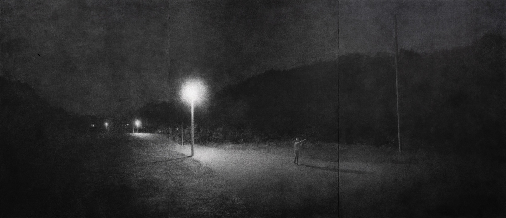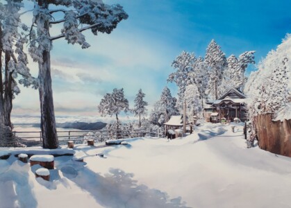新しく広島市立大学芸術学部の教員に就任した、3人のアーティストによる作品展。3人とも今、アート界で注目の存在。大熊弘樹さんは、ルネサンス期の技法を用いて、現代の瞬間を油彩で表現。大東忍さんは静せい謐ひつな風景の中に人の痕跡を描く木炭画。英国出身で広島在住のフィン・マシューさんは、移りゆく野呂山の森を描く。三者三様の表現を楽しんで。合計約20点を紹介。