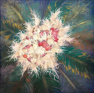 18年前、江戸の天才画家伊藤若冲の作品に出会いました。自分もこんな絵が描いてみたいと一念発起、京都芸術大学に入学しました。それから描き続けて今回が初めての個展です。「耀く」をテーマに命の息吹きを感じていただければ幸いです。