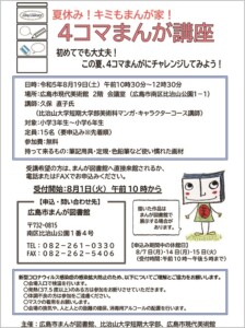 8月1日(火)10:00から、まんが図書館窓口または電話、FAXで申し込み。定員15名(先着順)