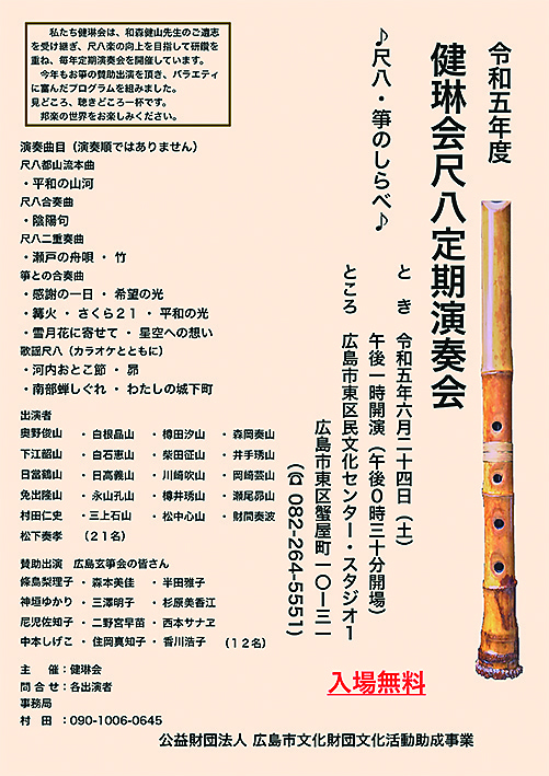 令和五年度 健琳会尺八定期演奏会【(公財)広島市文化財団文化活動助成事業】