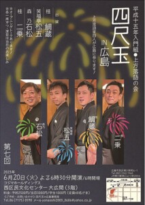 上方落語家4人の落語会。中でも桂鯛蔵さんは広島市出身。いつもは大阪で開催している同期4人の落語会を「地元でも開催したい」と、2016年からは広島で定期開催している。出演は桂鯛蔵さんのほか、笑福亭松五さん、森乃石松さん、桂二乗さん。オープニングトークに、ひとり1席ずつの落語、大喜利と楽しい内容。上方落語会の雰囲気を広島で味わえるチャンス。