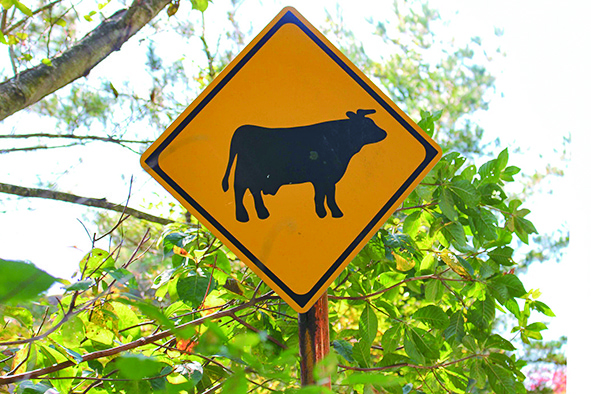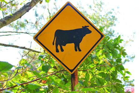 - 「動物が飛び出すおそれあり」の 標識(牛)