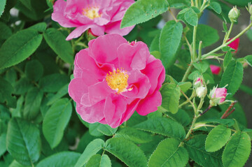 「生きた教科書」として、バラを体系的に学べるのも植物公園ならではの魅力の一つ。例えば、紀元前から栽培され、栽培バラの始祖とも呼ばれるロサ・ガリカ・オフィキナリス(ガリカ系)や香水として有名なロサ・ダマスケナ(ダマスク系)など個性的な品種の展示は必見です。また、広島ならではの展示として、平和にちなんだバラもおすすめ。欧米各国や国内の平和団体等から広島市に寄贈されたバラは平和大使の役割を担っており、「広島平和記念公園」と名付けられたものもあるんですよ。