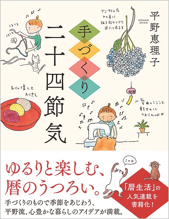 立春、春分、夏至など、二十四節気ごとにその節気や節目に合った「手づくりのもの」を提案している本です。提案されている「手づくり」は、身近にある材料で、季節を感じる事が出来る作品ばかり。二十四節気の説明もしっかりしてあるし、なんといってもイラストがとても可愛く、見ているだけでほのぼのとしてきます。そして季節の巡りを感じながら過ごすことの大切さを改めて教えてもらえます。