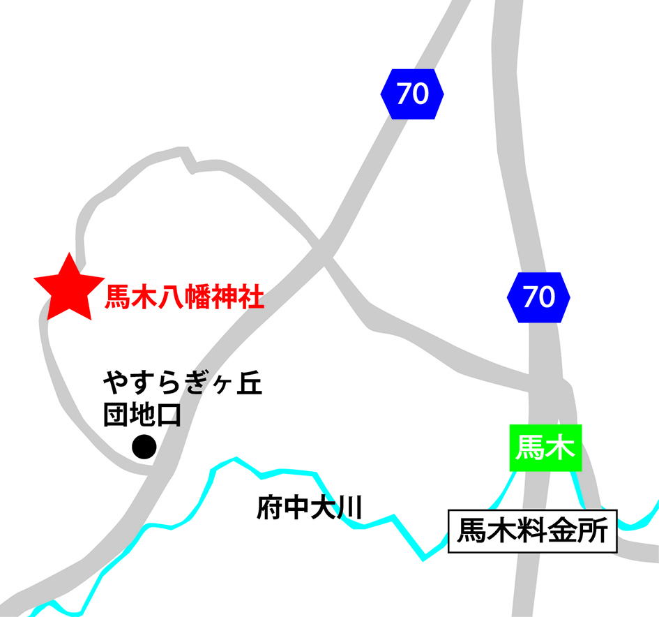 県道70号線を馬木五丁目のやすらぎヶ丘団地口で西に折れたところに、馬木八幡神社があります。馬木八幡神社は、「安芸町誌」によると、天正15(1587)年に二宮太良左衛門により建立され、享保年間(1716~1736)と昭和8(1933)年に改築の記録があります。