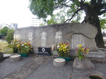 二中慰霊碑の背面には亡くなった全員の氏名が刻印されている