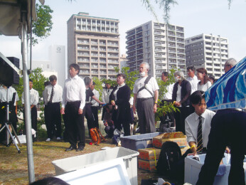 被爆79年、今年の広島平和宣言の中で松井市長は「市民社会が起こすべき行動として音楽などの交流を通して“平和文化”を共有できる世界を創っていきましょう」と表明された。ここに紹介するレクイエム「碑」を歌う、観音高校OB合唱団の取り組みもその市民運動の一つであろう。