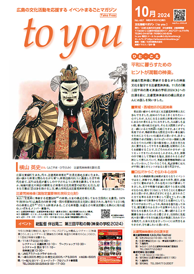 ☆ 貴重な機会でしたね。今月号の「to you市民パブリシストによるバックステージレポート」(P14)でも被爆証言を継承するコンサートを取り上げています。来年は被爆80年。若い世代に平和の願いをつなげていきたいですね。(編)