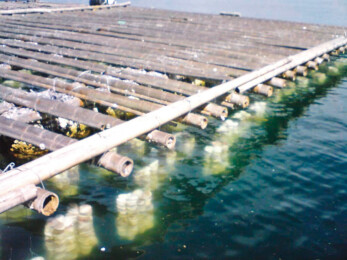 付着して生きる特徴を利用するカキ養殖
