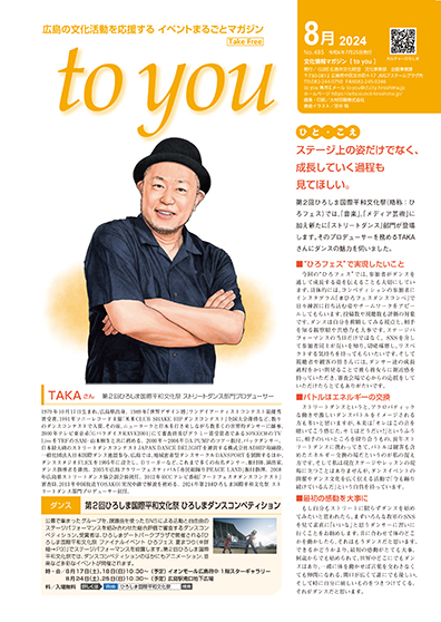 第2回ひろしま国際平和文化祭(略称:ひろフェス)では、「音楽」、「メディア芸術」に加え新たに「ストリートダンス」部門が登場します。そのプロデューサーを務めるTAKAさんにダンスの魅力を伺いました。