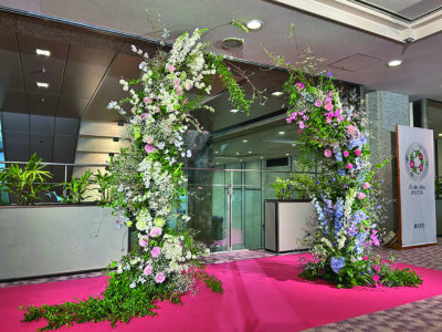 春を告げる花に彩られるクラシックコンサート。ロビーには生花と一緒に写真が撮れる撮影スポットが設けられ、ステージ上には豪華なアレンジメント。季節の花が上質な音楽をより一層盛り上げます。
