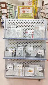 図書館スタッフ選りすぐりの本を詰め合わせたセットです。各館・室それぞれに違うテーマやパッケージにも注目してね。