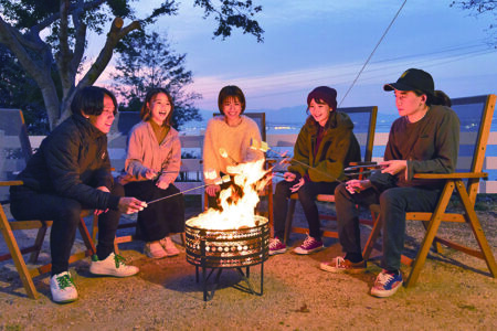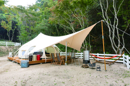 広島港からフェリーで約20分の似島に、グランピング施設が誕生しました。宿泊施設はテントとログハウスの2タイプで、食事の予約も可能。アメニティが充実しており、手ぶらでキャンプが楽しめます。薪割り&焚火、ドラム缶風呂など、童心に帰って冒険気分に浸るもよし、瀬戸内海の景色を眺めながらサウナで癒されるもよし。街の喧噪を離れてのんびり過ごすのにピッタリの施設です。